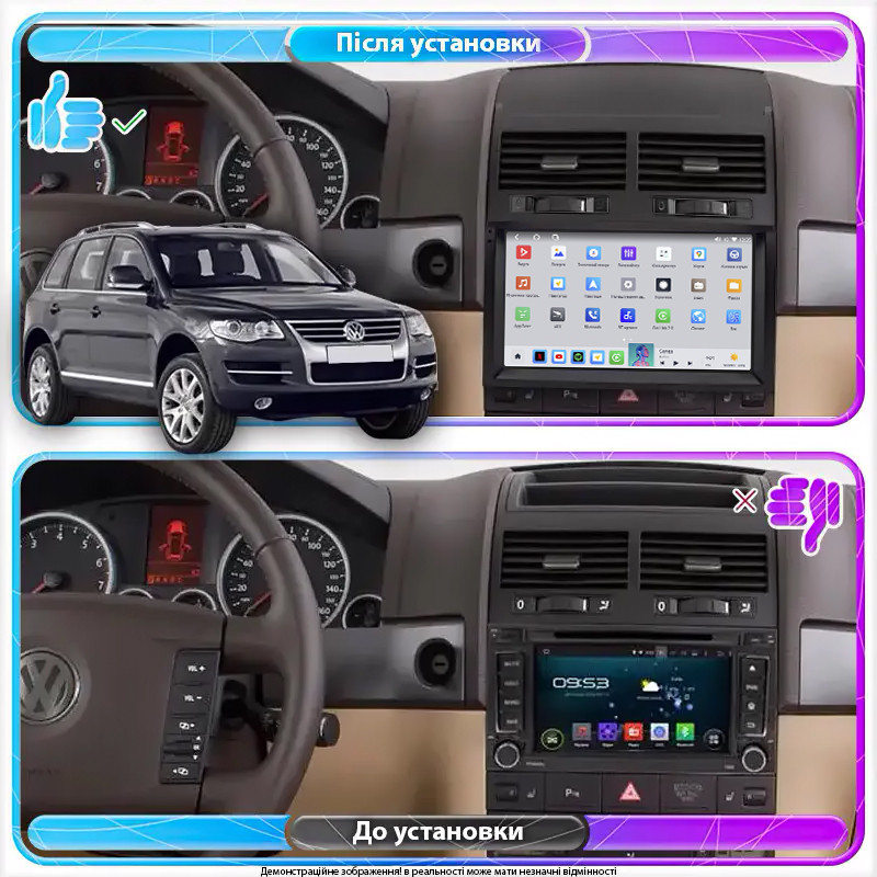 | Тип призначення | Al Штатна магнітола Android для Volkswagen Touareg I Рестайлінг 2006-2010 екран 9" 4/64 QLED CarPlay 4G Wi-Fi GPS 360 Prime |